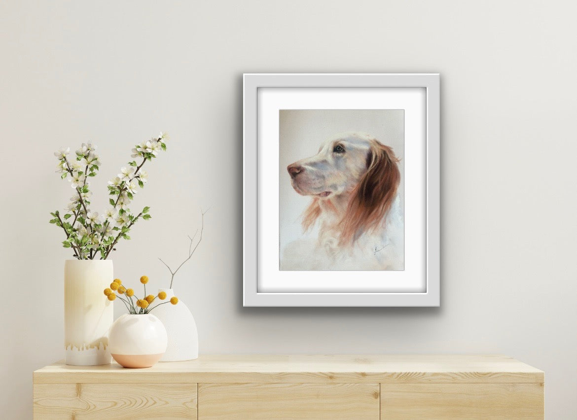 Pet portraits are printed on gallery-quality paper and come pre-attached to the high-quality picture mat.